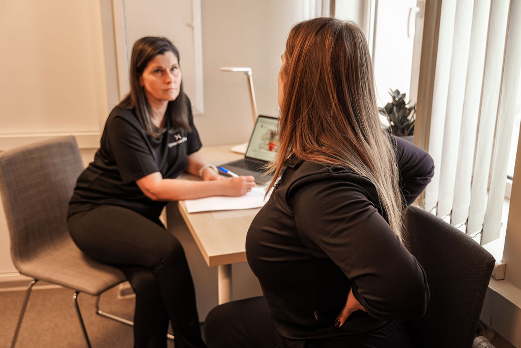 Pirmā vizīte parasti ietver sarunu un veselības vēstures izvērtēšanu. Fizioterapeits uzklausa jūsu sūdzības, ikdienas slodzi un mērķus. Tālāk seko funkcionāla izmeklēšana – tiek novērtēta stāja, kustību apjoms, muskuļu spēks un citi rādītāji. Diagnozes un mērķu formulēšanu – speciālists izskaidro atradni un ierosina terapijas plānu. Pirmo terapijas daļu – bieži vien jau pirmajā vizītē tiek uzsākti vingrinājumi vai manuālā terapija. Vizīte ir mierīga, saprotama un pielāgota jūsu vajadzībām.